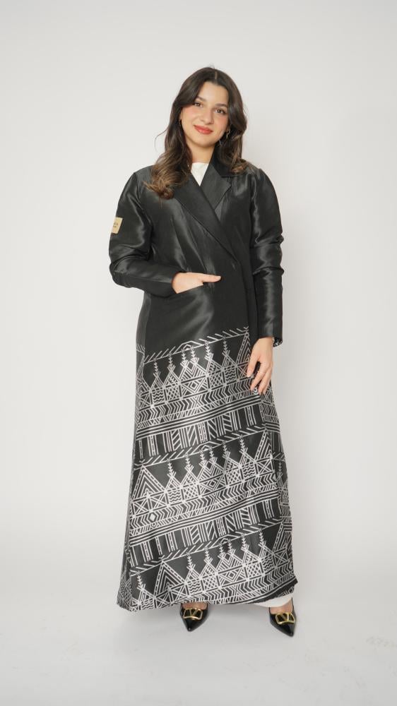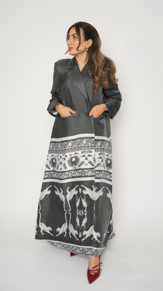 نوع القماش تفته جاكر مطبوع باللون الفضي والاسود