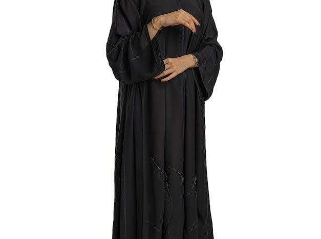 التطريز يضيف لمسة من الفخامة والرقي إلى العباية، بينما يمنحها اللون الأسود مظهرًا كلاسيكيًا وأنيقًا.