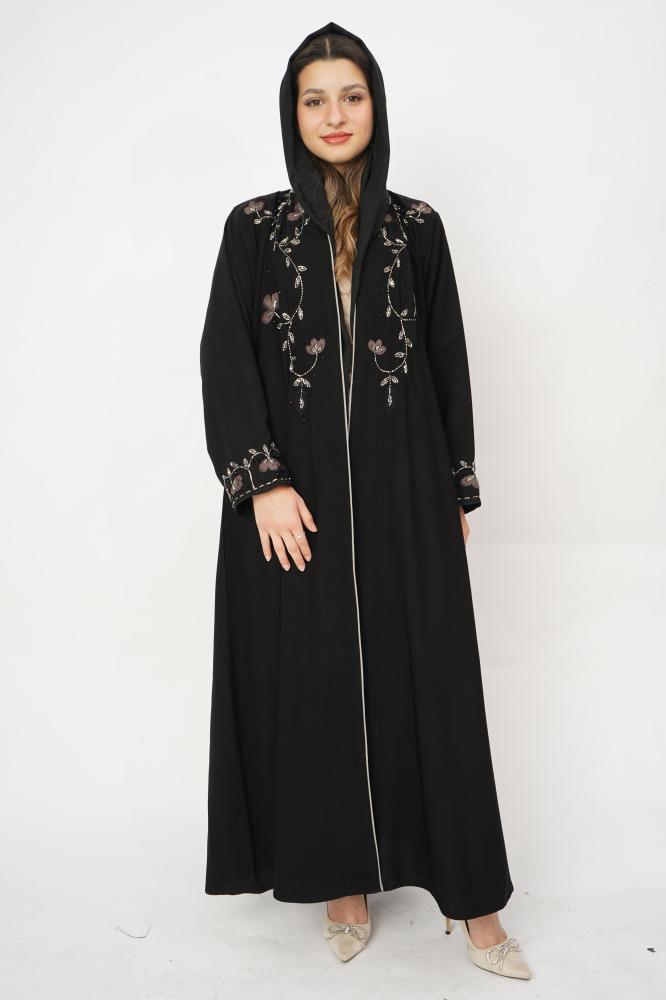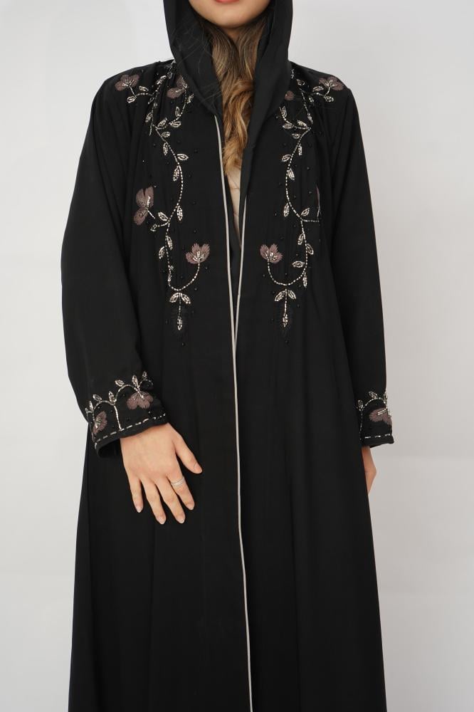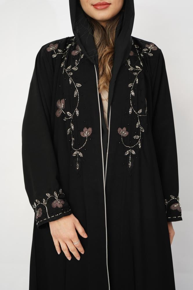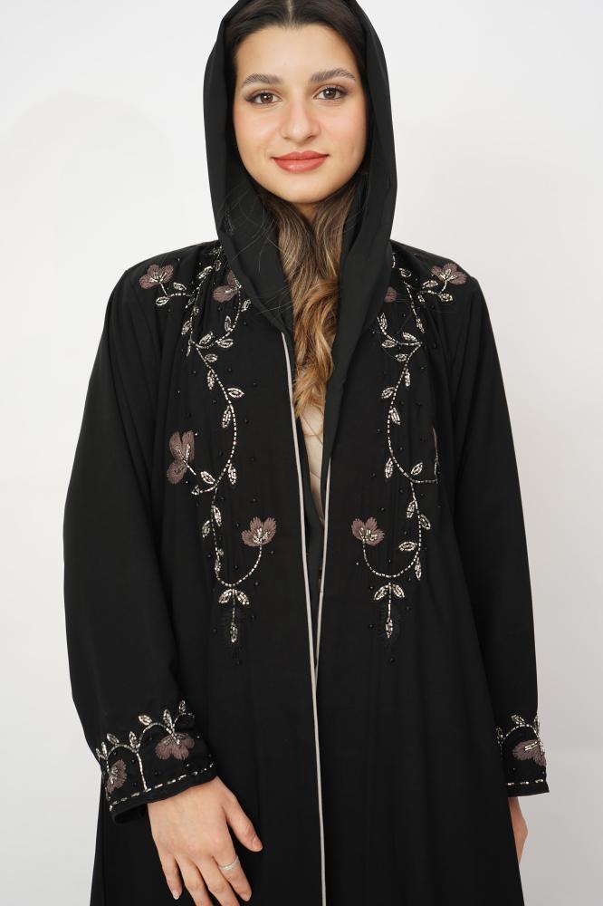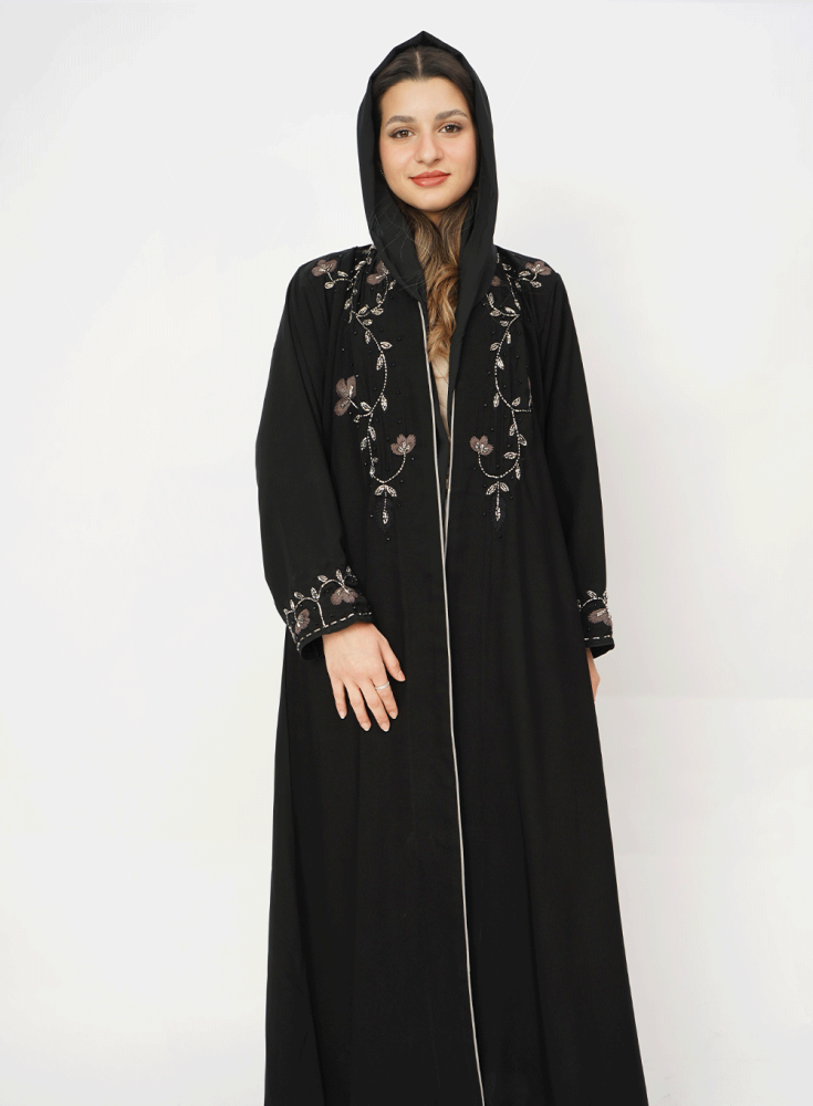 عباية بسيلان على الكتف والأكمام – بقماش كريب الرياض بقصة مستقيمة لمسة فخامة وانسيابية راقية