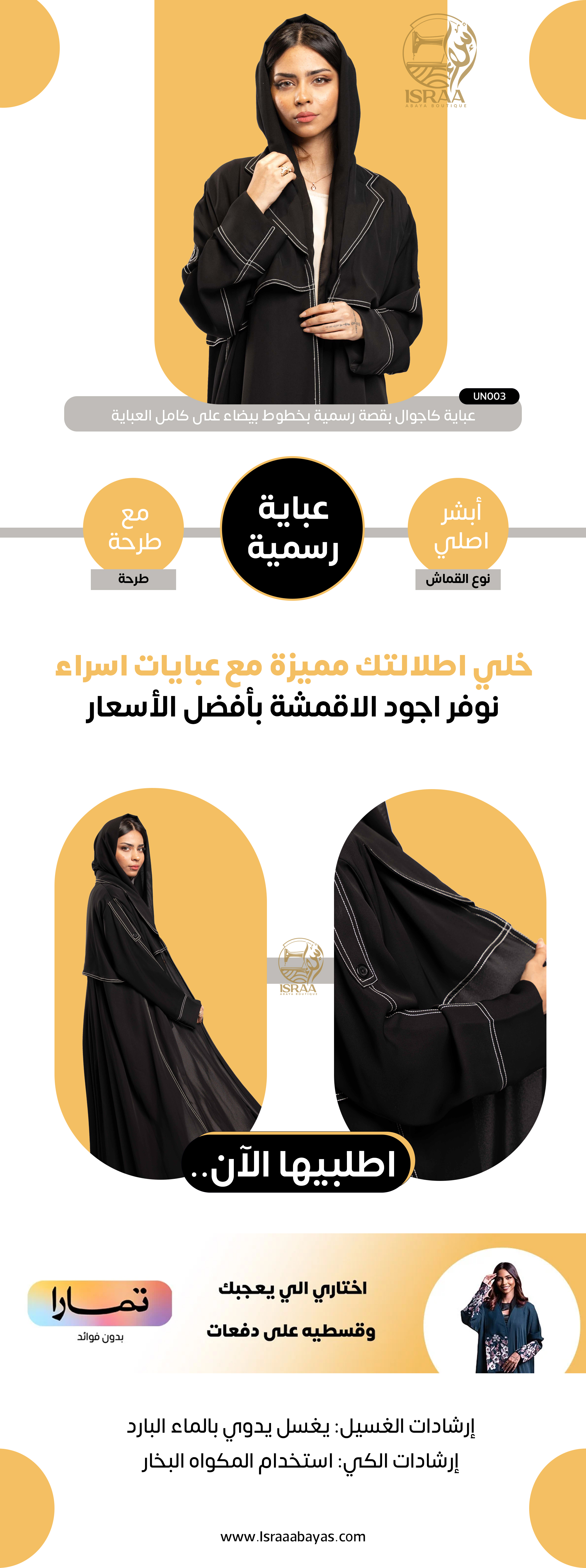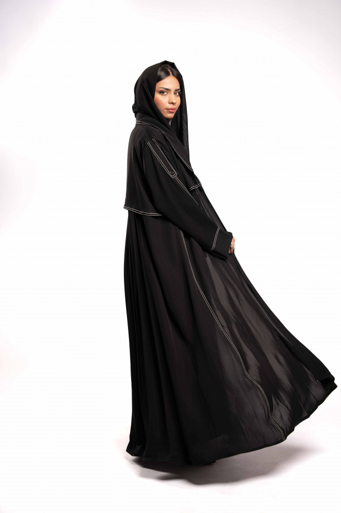عبايتنا الرسمية الكاجوال بخطوط بيضاء على كامل العباية بقماش ابشر هي الخيار الأمثل لك!