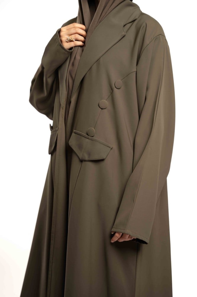 عباية كاجوال رسمية باللون الكاكي الغامق, قماش ابشر