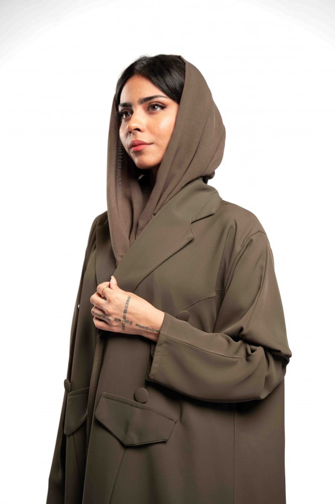 عبايتنا الكاجوال الرسمية باللون الكاكي الغامق بقماش ابشر هي الخيار الأمثل لك!