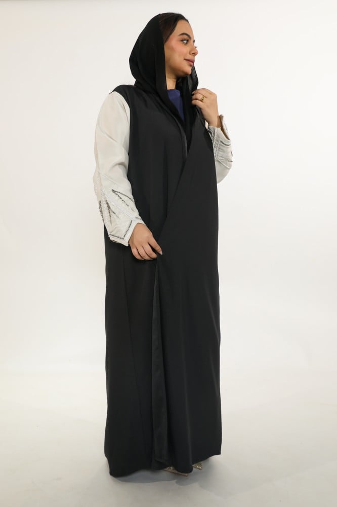 عباية تفته لف ، مطرزة باللولو باللون الاسود و باكمام متعددة الألوان