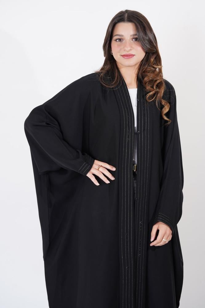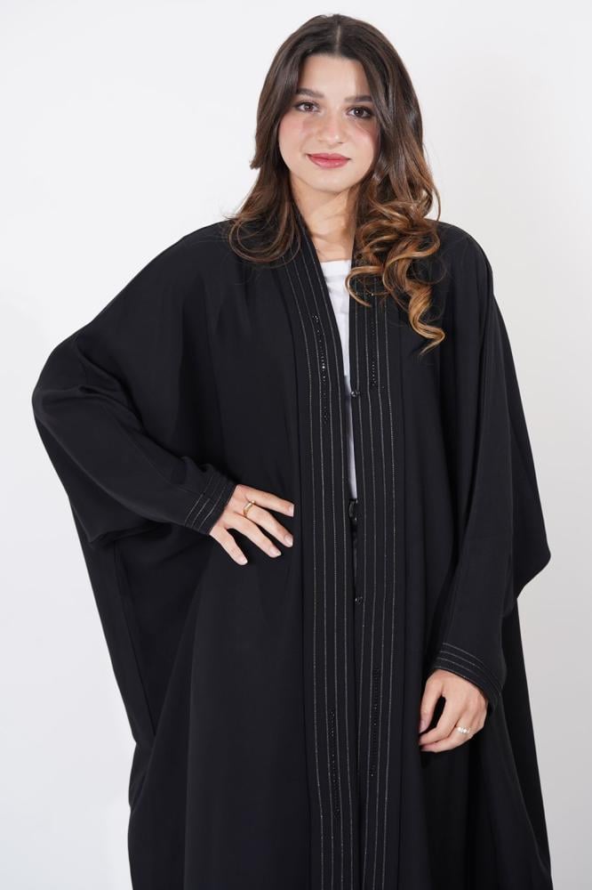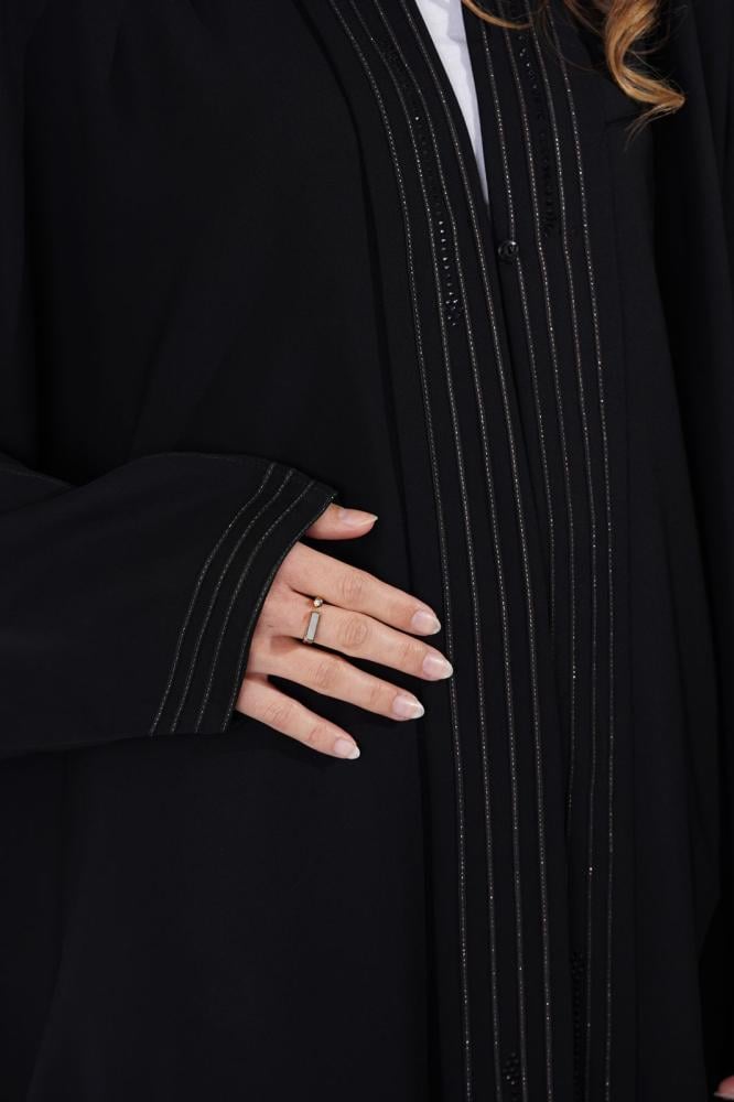 احصلي على هذه العباية السوداء المخططة من الأمام الآن، واستمتعي بإطلالة يومية أنيقة وعصرية تناسب مختلف المناسبات.